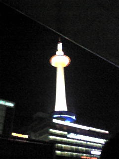 てれんぱれんと見て歩いて京都駅に戻り、朝伊勢丹開店前で行けなかった空中経路を通り抜けたりしてみた。京都タワーの11階くらいを正面に見られます。